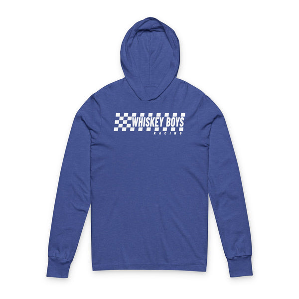 A lightweight hooded long sleeve that feels lived-in from the first wear. The slim-but-regular silhouette and side-seamed construction keep the shape steady while the crossover V at the neckline adds a subtle, vintage-inspired detail. Printed with a bold checker-and-text chest graphic, this piece carries a road-trip, dive-bar energy — the kind of top you reach for on cool evenings by the tailgate or under stage lights at an outdoor show. Soft airlume combed cotton gives it a smooth hand and breathable drape, while heather and triblend colorways offer a relaxed, broken-in look. Wear it layered or solo for a low-key yet statement-making vibe.